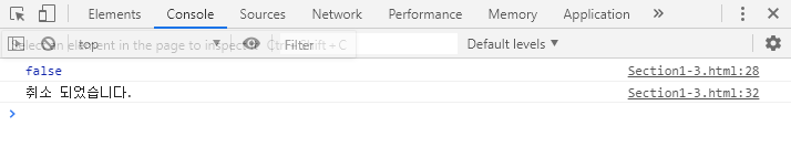 경고 창에 예를 눌렀을 경우 true를 리턴한다.